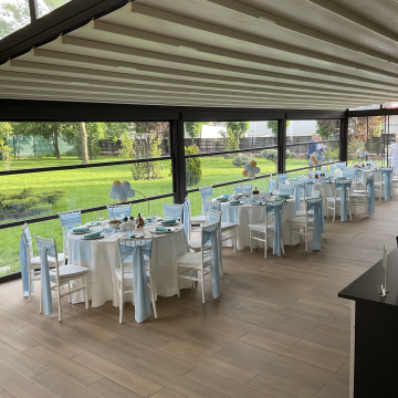 Iar dacă vă puteți petrece în aer liber, pe terasa noastră vă veți bucura de o petrecere de neuitate! Terasa indiferent de sezon, este disponibil și retractabil a unei soluții moderne de încălzire în pardoseală.